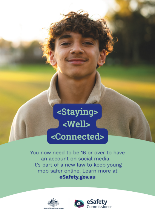 The campaign ‘For the good of their wellbeing’ raises awareness of the new Social Media Minimum Age law. The new law means that as of 10 December, you have to be 16 years or older to have a social media account.