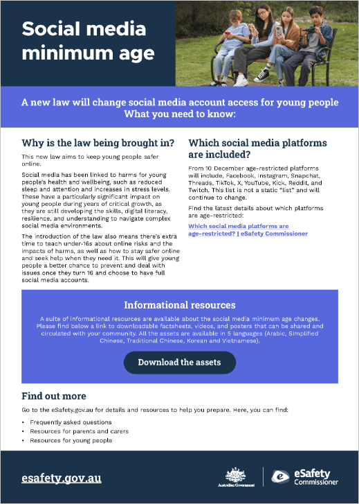 This change is designed to protect young people from the risks of harm from social media and to support their wellbeing.