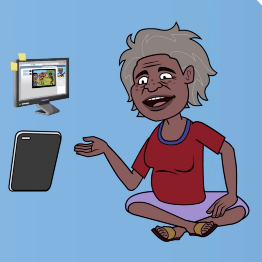 Let's go on a journey. Long time ago in the Dreaming, stories were formed and told the old way, person to person. These stories have left footprints for generations to follow. These days, technology has changed the way we share and tell our stories. |