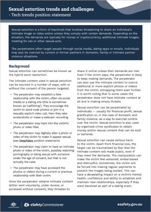 Remember, sexual extortion is not your fault. Anyone can experience it. You are not alone. For more information, read eSafety’s advice on responding to sexual extortion.