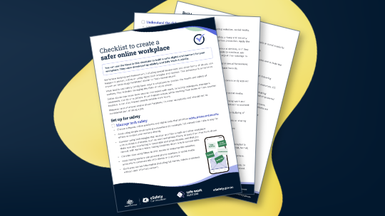 - Download our workplace safety guidance and share with staff – The practical fact sheets developed with Safe Work Australia outline steps to help prevent and deal with incidents of online abuse.