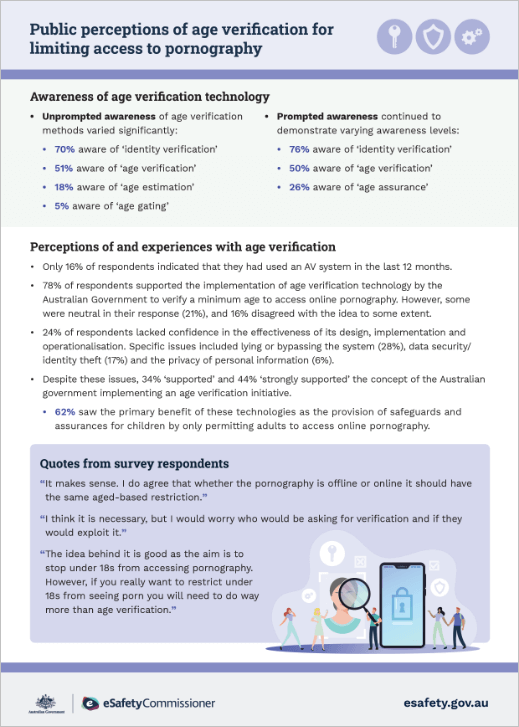 - perceived benefits and barriers to age verification solutions (which verify a minimum age to access online pornography)